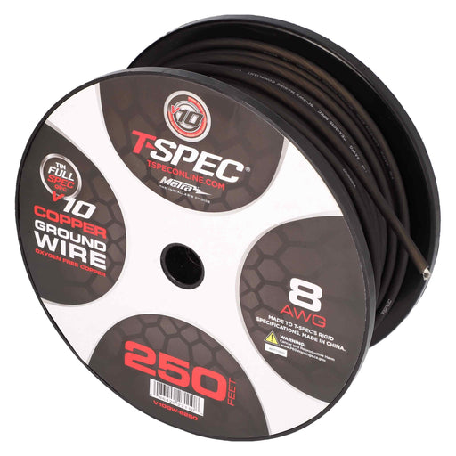 T-Spec V10GW-8250 8 AWG OFC Power Wire v10 SERIES - 250ft  Matte Black Meets CEA and ANSI specifications for wire gauge Full virgin copper constru...