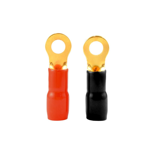 The Wires Zone 4 Gauge 5/16" Ring Terminals - 10 pack Universal Ring terminals 5/16" 4 Gauge Vinyl Insulated Gold Plated Red and Black Ring Termin...