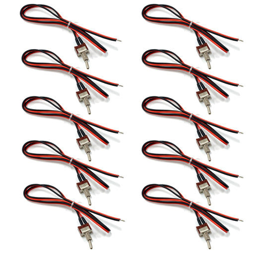TS-10 Heavy Duty Pre-Wired 6A 12V DC On/Off Toggle Switch - (10 pack) On/Off Mini Toggle Switch with Leads Works for all 12V Applications 2 Wire...