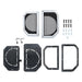 Enhance the appearance of Jeep® interiors when installing aftermarket speakers with this pair of lower dash speaker grille cut-ins. They allow installers to widen the factory 4-inch opening to accommodate an upgrade to 6-inch to 6.75-inch speakers for more vivid sound while adding a bold style. These speaker covers feature a gloss black metal mesh grille with silver accents for a rugged off-road look. They are designed to fit select Jeep Wrangler JL and Gladiator JT vehicles and perfectly complement the JP-1017 dashboard speaker covers and the JP-1014 dash speaker pods.